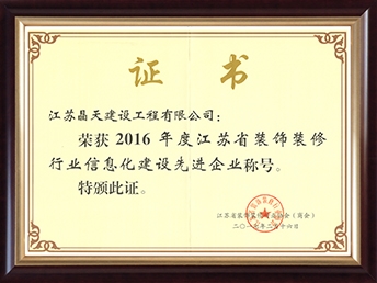 • 2016年度江蘇省裝飾裝修行業信息化建設先進企業