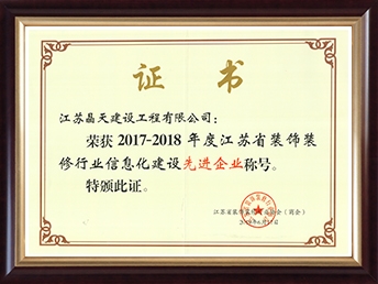 • 2017~2018年度江蘇省裝飾裝修行業信息化建設先進企業